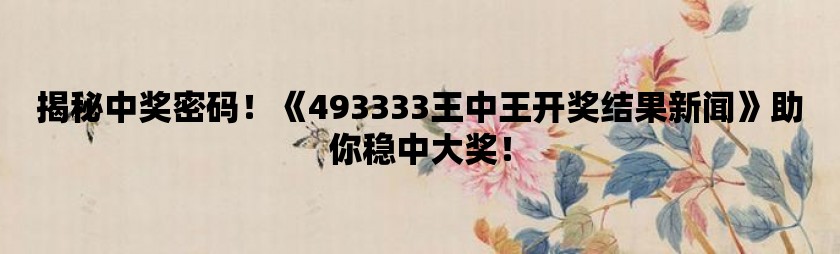 讓我們一起關注“王中王493333WWW”,探尋其背后的故事,感受其獨特的魅力,在這個過程中,我們或許能夠?qū)W到許多東西,感受到人生的價值與意義。