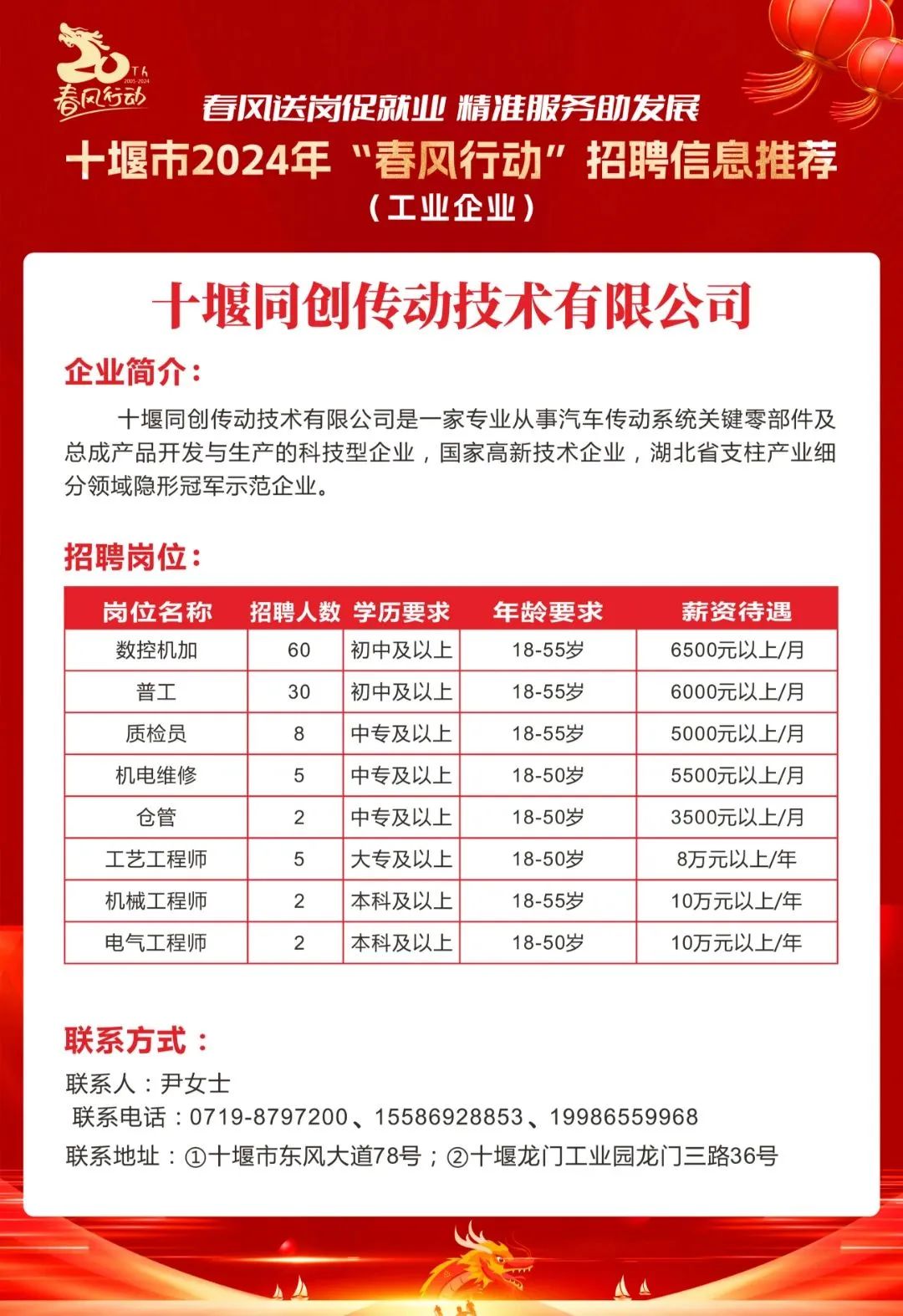 隨著十堰市汽車產(chǎn)業(yè)的蓬勃發(fā)展,各大汽車企業(yè)紛紛加大招聘力度,以下是一些汽車行業(yè)的招聘信息: